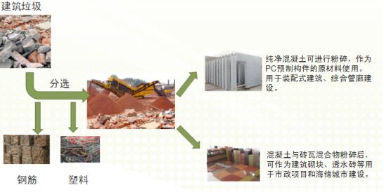 資源化利用,建筑垃圾破碎站直接將建筑垃圾破碎為再生粗細(xì)骨料代替天然砂石料,或利用建筑垃圾中各組分的特點(diǎn)生產(chǎn)處新的建材產(chǎn)品。資源化利用建筑垃圾是解決高能耗、高污染、高排放、低效益問題的重要措施,是節(jié)約土地、節(jié)約資源的重要途徑,是發(fā)展循環(huán)經(jīng)濟(jì)、建設(shè)環(huán)境友好型和資源節(jié)約型社會(huì)的重要舉措,是貫徹落實(shí)科學(xué)發(fā)展觀、實(shí)現(xiàn)可持續(xù)發(fā)展、保護(hù)環(huán)境的必然要求。